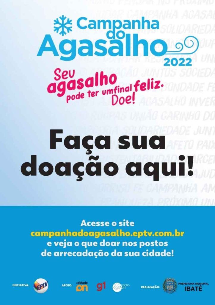 A Prefeitura de Ibaté, por meio do Fundo Social de Solidariedade, em parceria com a EPTV, realiza até o dia 31 de julho, a Campanha do Agasalho 2022.