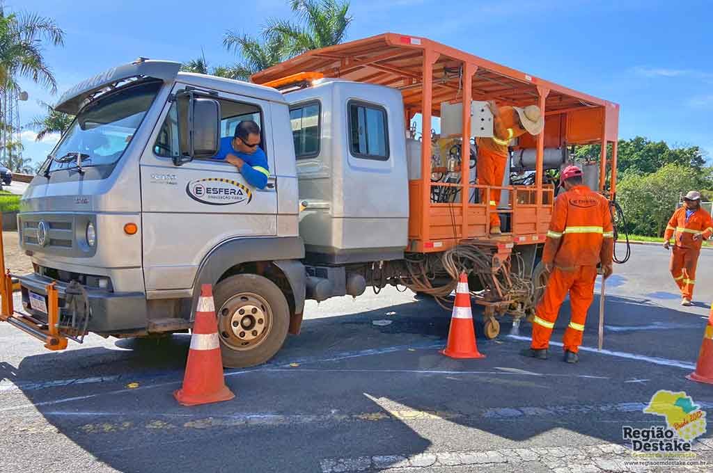 O trabalho, que vem sendo executado por empresa terceirizada, vencedora do processo licitatório, com a supervisão da Secretaria Municipal de Obras, consiste na aplicação de tinta específica acrescida de microesferas de vidro, tornando a sinalização refletiva para orientação noturna dos motoristas.