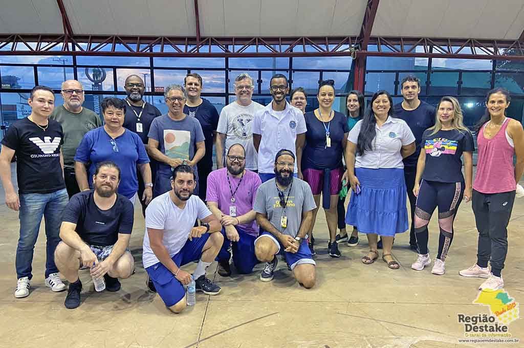 Os professores da disciplina de Educação Física da rede municipal também participaram da oficina, pois essa prática agrega conhecimento e possibilidades para o referido campo de atuação; reiteramos que a formação faz parte da capacitação e planejamento pedagógico dos professores da rede municipal.