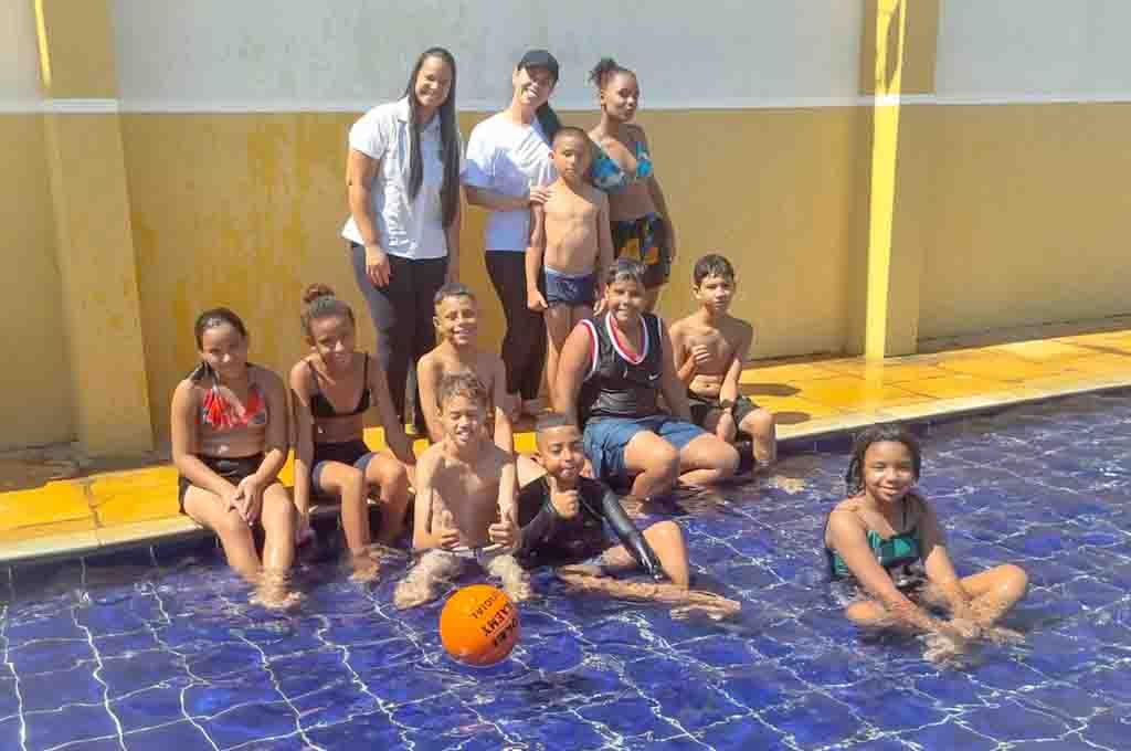As crianças que frequentam diariamente o “Espaço Amigo”, participaram das atividades na Piscina Municipal com as educadoras do projeto, e do Campo Municipal, em parceria com a Secretaria de Esporte.