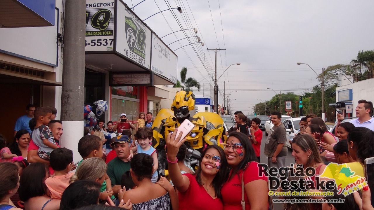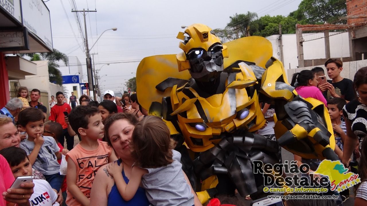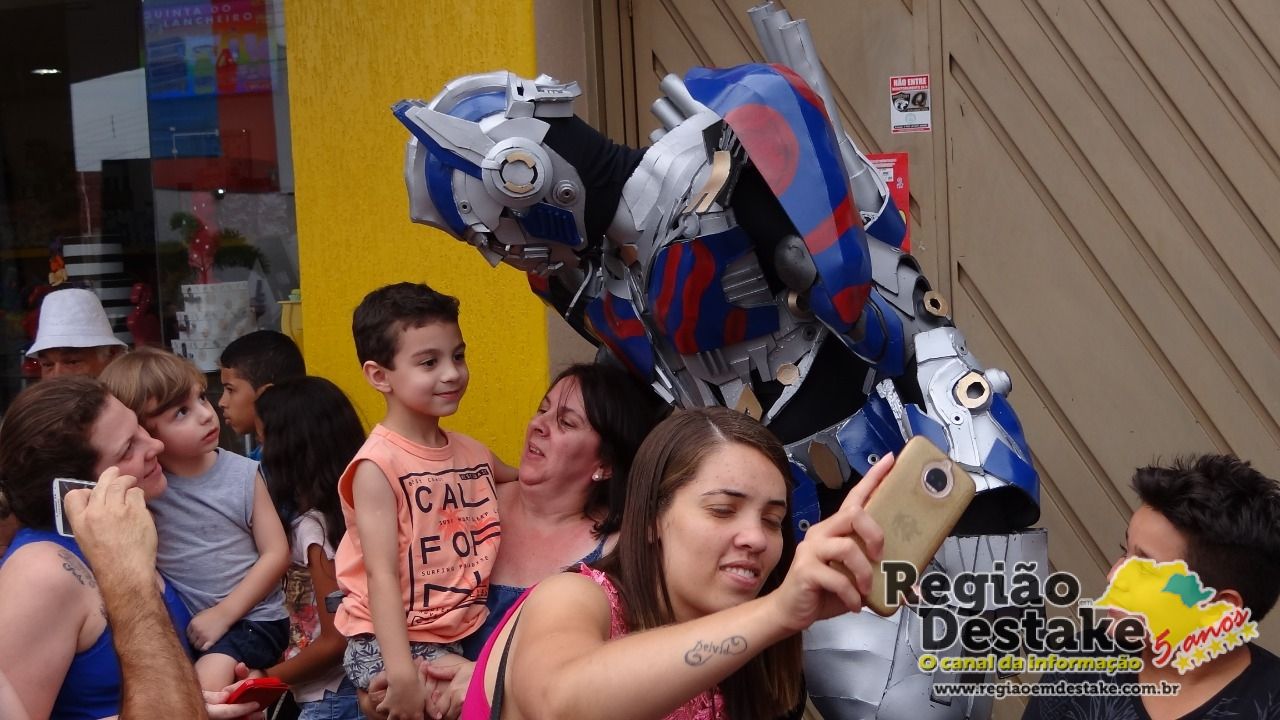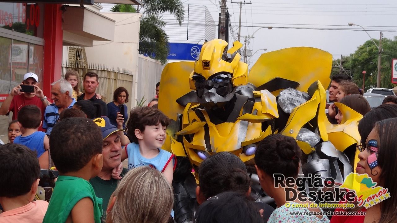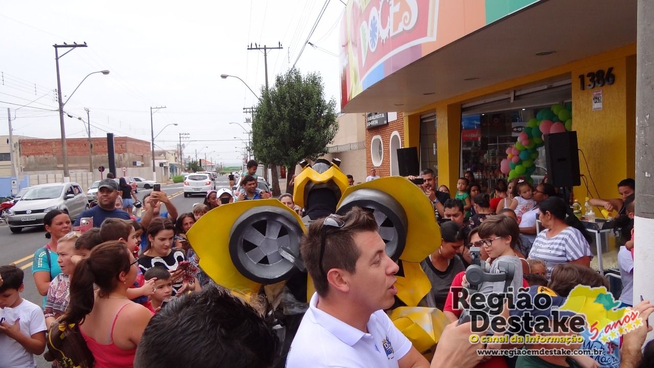 A Empório dos Doces movimentou a Avenida São João, na tarde deste sábado, dia 13 de outubro. Um grande número de crianças foram conferir, pela primeira vez na cidade de Ibaté, os Transformers Bumblebee e Optimus Prime.