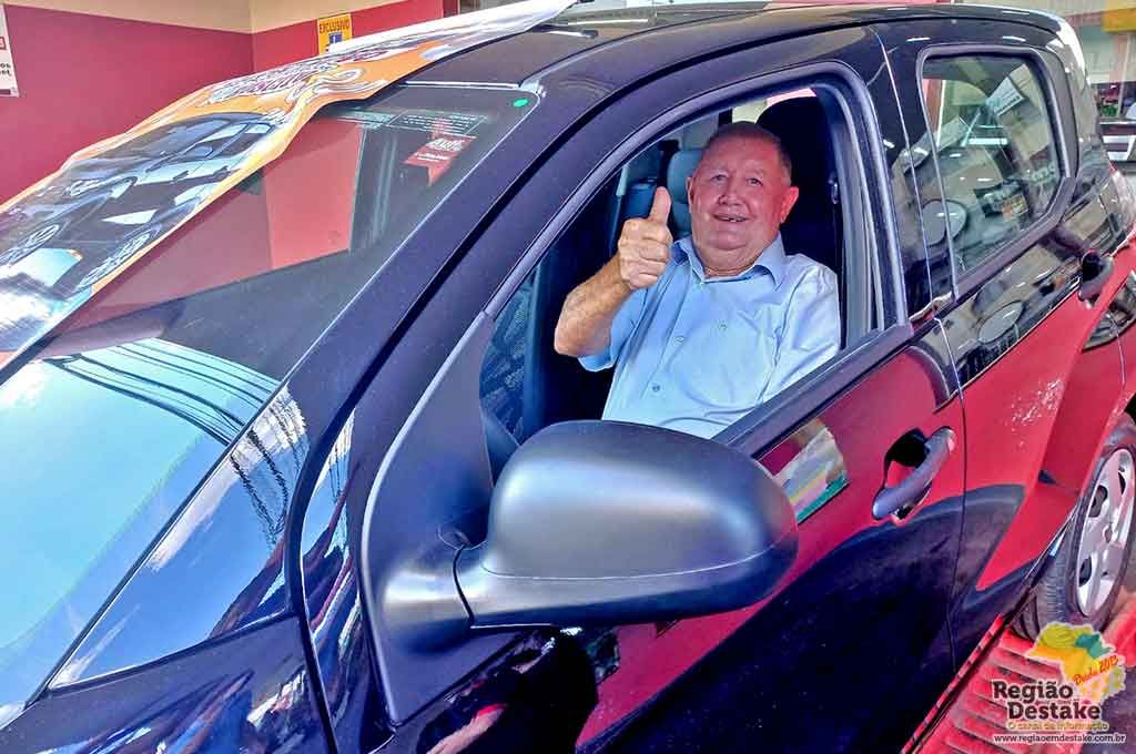 Logo após o anúncio, a equipe entrou em contato com o felizardo e comunicou o sorteio. Prontamente, o ganhador foi até ao supermercado e falou da sua alegria de ganhar o carro. “Estou muito feliz. Sou cliente do Ruscito desde quando eles começaram”, contou.
