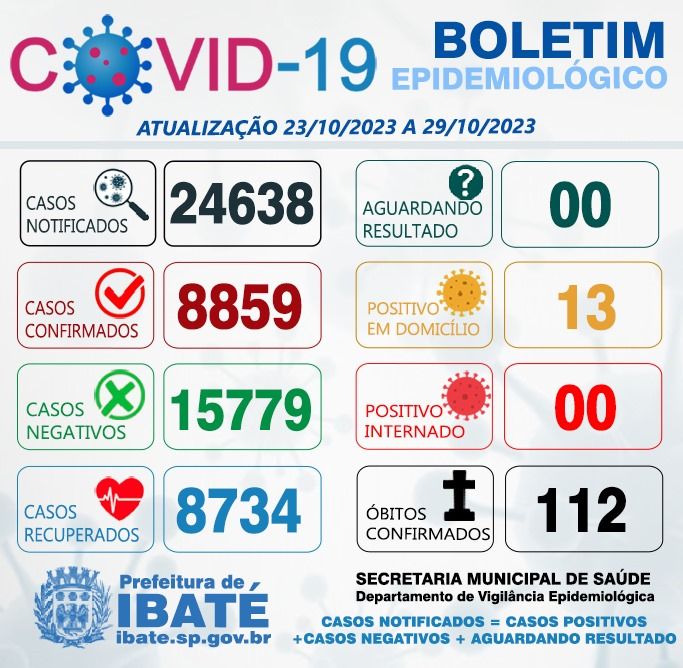 A Secretaria Municipal de Saúde de Ibaté, através da Vigilância Epidemiológica e do Gabinete de Prevenção e Monitoramento do Coronavírus, divulgou o Boletim Epidemiológico sobre a situação da Covid-19, no município.