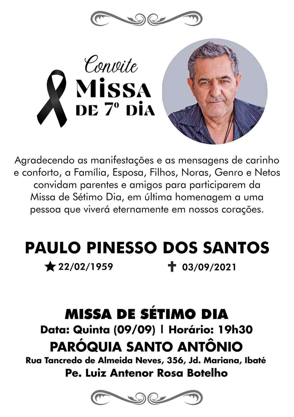 LUTO | Família de Paulo Pinesso convida para Missa de Sétimo Dia