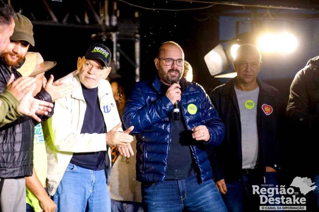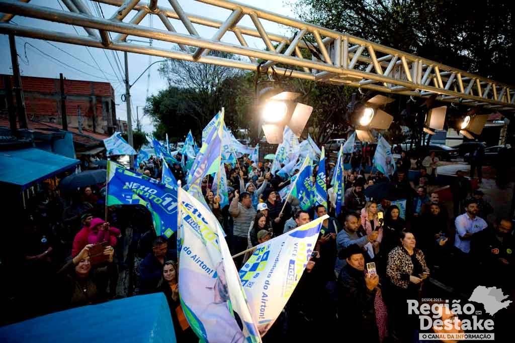 Com a presença de um público que enfrentou a chuva e o vento frio, a emoção tomou conta do evento desde o início com os discursos de lideranças do grande Cidade Aracy e que apoiam a candidatura de Netto para prefeito. O próprio prefeito Airton Garcia também subiu ao palco e discursou, mostrando disposição e ânimo para lutar com Netto por São Carlos.