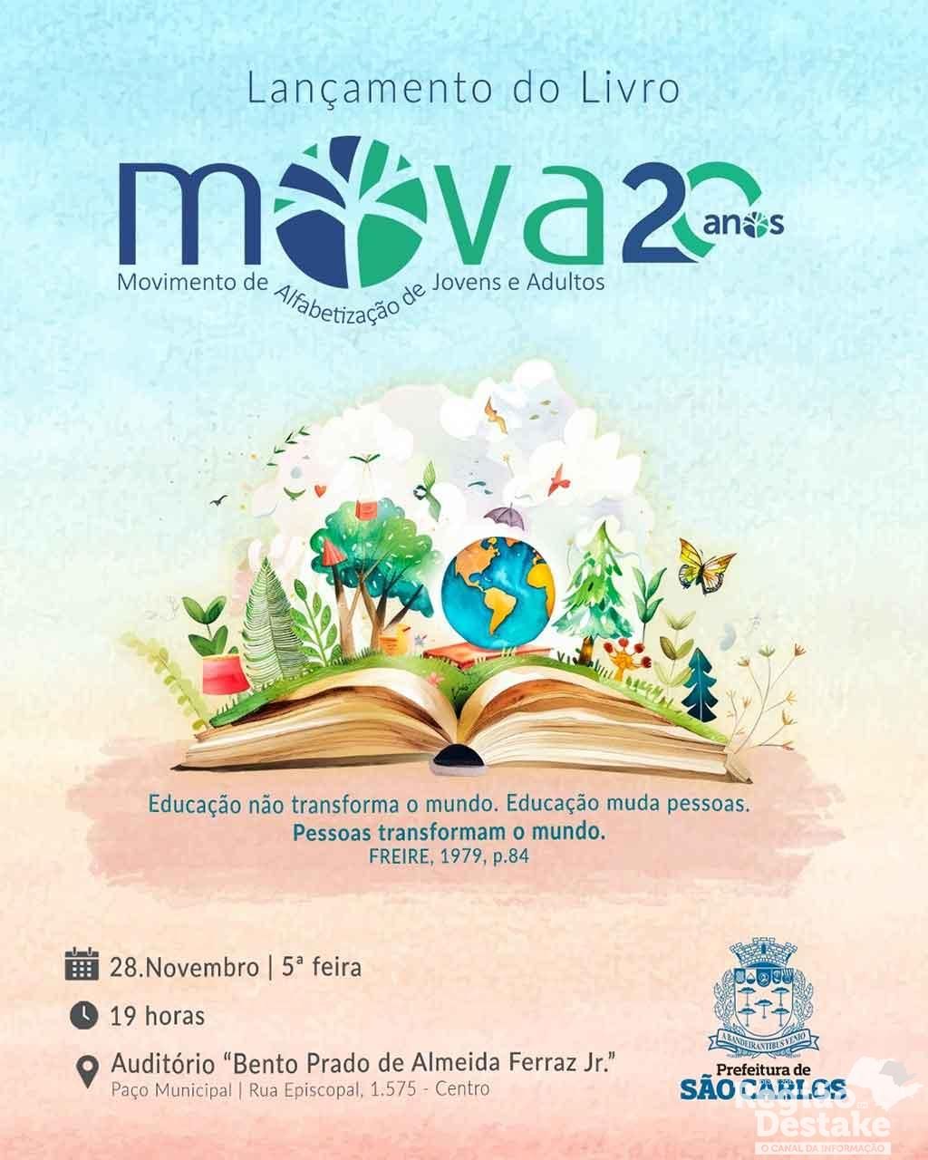 O Movimento de Alfabetização de Jovens e Adultos (MOVA) de São Carlos celebra duas décadas de atuação com o lançamento da primeira edição do livro “MOVA São Carlos 20 Anos”, na próxima quinta-feira (28), às 19h, no auditório do Paço Municipal. O evento é gratuito e contará com sessão de autógrafos e homenagens a educadores e educandos que fizeram parte dessa trajetória.