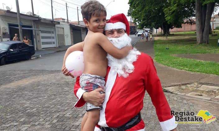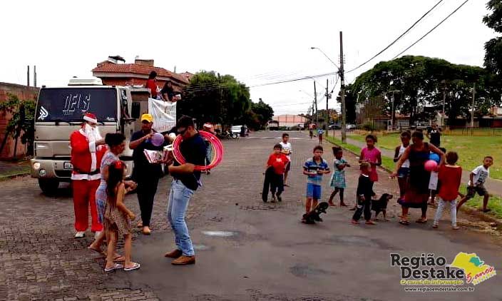 Os integrantes disponibilizaram um caminhão basculante e percorreram as ruas em uma linda ação beneficente. “É gratificante terminar o ano assim. A união e humildade é a receita. Recebemos mais da metade dos brinquedos da Associação de Moradores do Bairro Vila Elisabeth e também do Fundo Social de Solidariedade da Prefeitura de São Carlos e enchemos um caminhão. É uma região carente e tivemos que nos preparar bem para atender a demanda. Foi emocionante e purificou a nossa alma”, disse Mauro Leiva, integrante da Comissão.