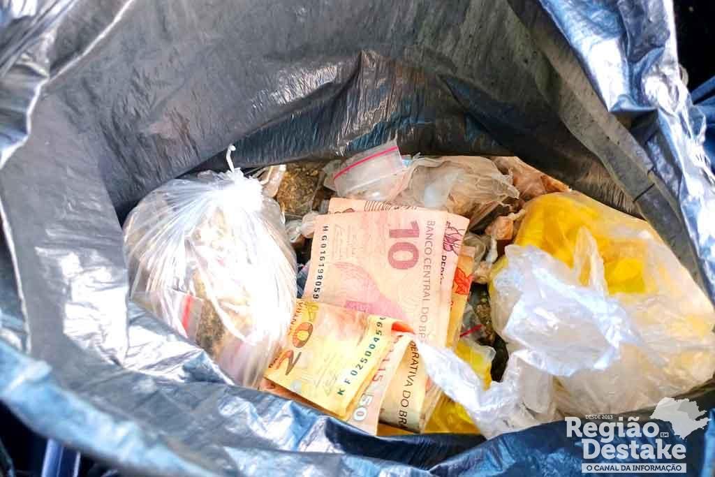 Durante a operação, as autoridades avistaram três indivíduos em atitude suspeita. Dois deles fugiram ao perceberem a presença dos policiais, enquanto um tentou sair andando. No local onde os suspeitos estavam foi encontrada uma sacola contendo porções de maconha, cápsulas de cocaína, pedras de crack e porções de haxixe, além de dinheiro.