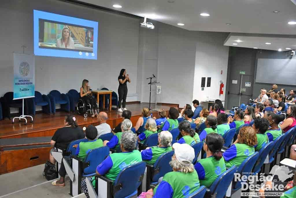 Leve e descontraída, a palestra da influenciadora Andrea Schartz lotou as dependências do Auditório “Bento Prado Júnior”, no Paço Municipal, na última quinta-feira, 7 de março. Uma centena de pessoas, a convite da Secretaria Municipal da Pessoa com Deficiência e Mobilidade Reduzida (SMPDMR), estiveram presentes no evento que faz parte do calendário especial do mês em homenagem ao Dia Internacional da Mulher em São Carlos, promovido pela Secretaria Municipal de Cidadania e Assistência Social (SMCAS).