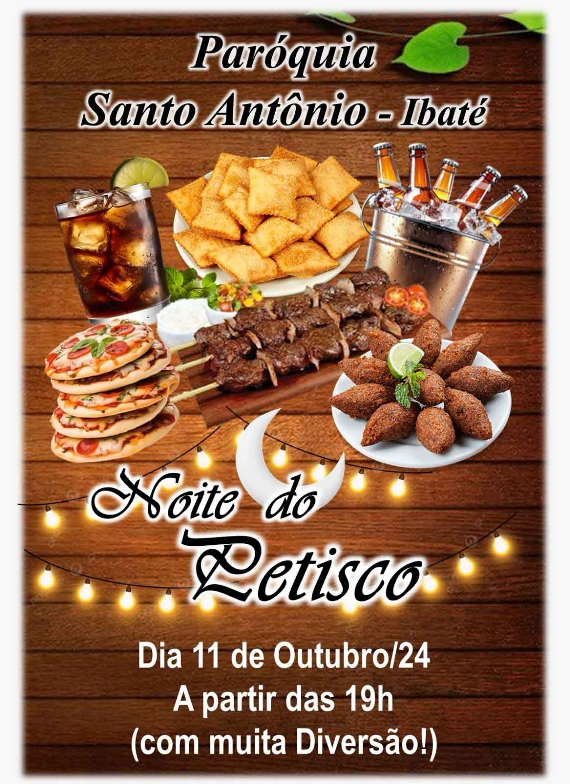 A Paróquia Santo Antônio de Ibaté convida toda a comunidade para uma saborosa e animada “Noite do Petisco”, que será realizada no dia 11 de outubro de 2024, a partir das 19h. O evento acontecerá no salão da própria paróquia e promete uma noite cheia de deliciosos petiscos e muita diversão para todos os presentes.