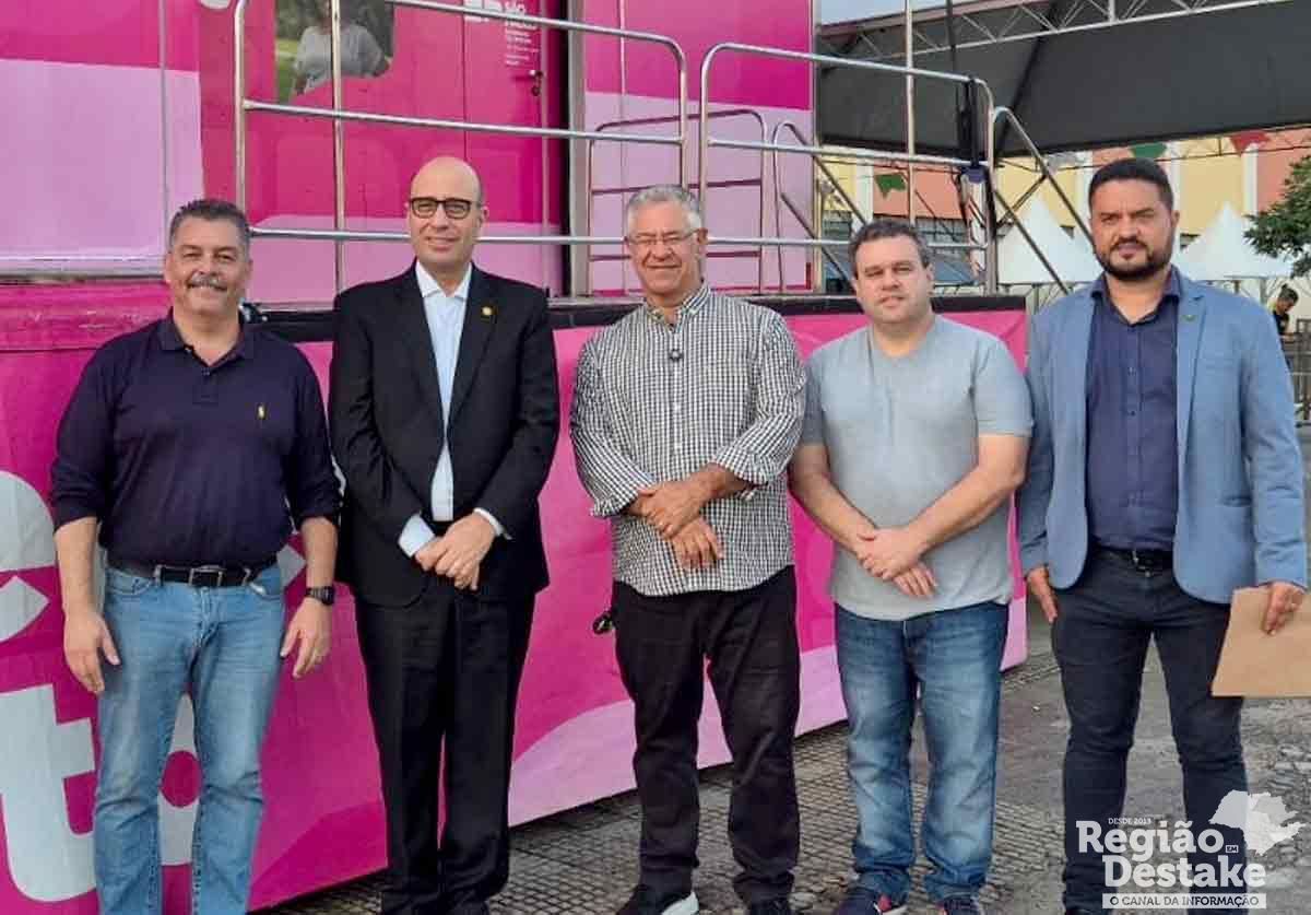 O secretário municipal de Saúde de São Carlos, Leandro Pilha, recebeu nesta sexta-feira (6) o deputado estadual Oséias de Madureira na unidade móvel do programa “Mulheres de Peito”, instalada na Praça do Mercado Municipal. A visita teve como objetivo reforçar a importância da iniciativa que amplia o acesso ao diagnóstico precoce do câncer de mama.