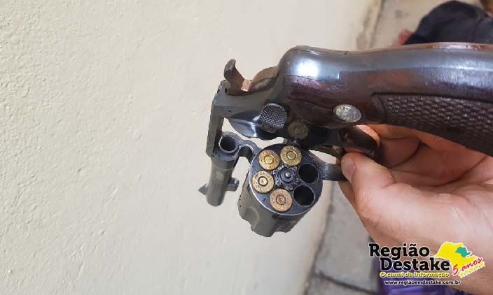 Os oficiais reagiram e atingiram o criminoso que estava armado com um revólver, com a numeração suprimida e quatro munições, sendo duas intactas e duas deflagradas.