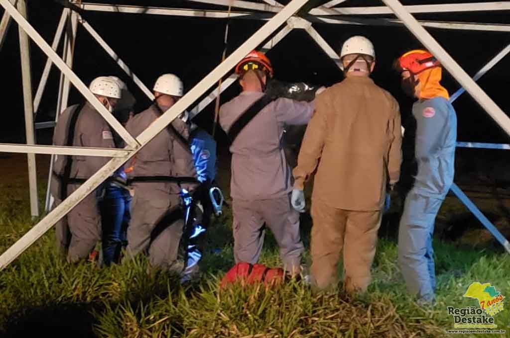Uma mulher foi resgatada de uma torre de alta tensão, na noite desta terça-feira, 07, em uma área rural de Descalvado.