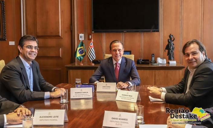 O governador João Doria e o vice-governador Rodrigo Garcia receberam no Palácio dos Bandeirantes, nesta sexta-feira (4), a visita do presidente da Câmara dos Deputados Rodrigo Maia e dos deputados federais Alexandre Leite e David Soares.