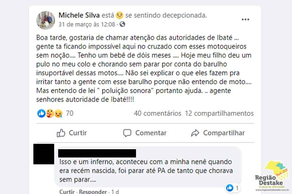 “Gente está ficando impossível aqui no Jardim Cruzado com esses motoqueiros sem noção. Tenho um bebê de dois meses. Hoje meu filho deu um pulo no meu colo e [está] chorando sem parar por conta do barulho insuportável dessas motos”, reclamou a moradora Michele Silva. “Não sei explicar o que eles fazem pra irritar tanto a gente com esse barulho”, completou.