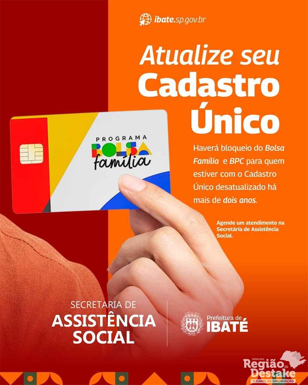 A Prefeitura de Ibaté alerta que beneficiários do Bolsa Família e do Benefício de Prestação Continuada (BPC) com o Cadastro Único desatualizado há mais de dois anos correm o risco de ter seus pagamentos bloqueados pelo Governo Federal.