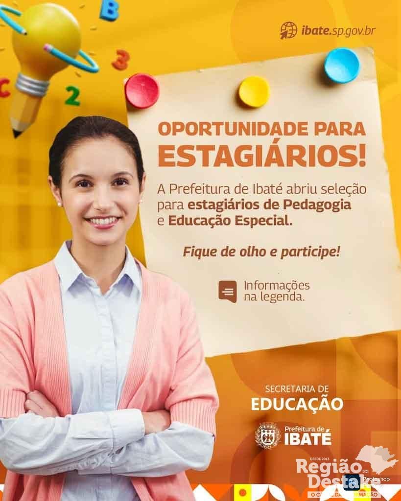 A Prefeitura de Ibaté, por meio da Secretaria Municipal de Educação, abriu um processo seletivo para a contratação de estagiários dos cursos de Pedagogia e Educação Especial.