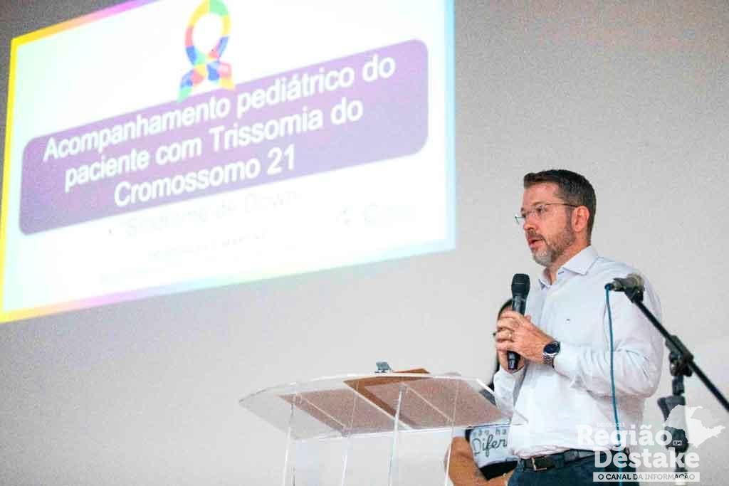 O Dr. Douglas F. Martins, médico pediatra e funcional integrativo ministrou palestra com o tema “Acompanhamento pediátrico do paciente com trissomia do cromossomo 21”. “É importante que o diagnóstico seja realizado no pré-natal, temos exames, como o de translucência nucal, um ultrassom morfológico do primeiro trimestre da gravidez que ajuda a avaliar o risco de síndrome de Down. O exame analisa a quantidade de líquido sob a pele na região atrás do pescoço do feto, além dos testes genéticos. O mais importante é a família saber que a síndrome de Down não é uma doença, mas sim uma condição genética inerente à pessoa. Porém, está associada a algumas questões de saúde que devem ser observadas desde o nascimento da criança”, ressaltou o médico.