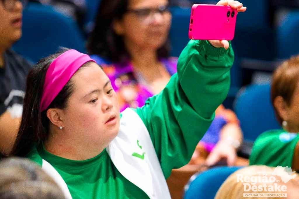 O evento em São Carlos começou com o depoimento do influencer João Vitor de Paiva, palestrante, modelo, ator, 1º conselheiro jovem T21 do Unicef, 1º aluno de Educação Física T21 graduado pela PUC-Goiânia, ganhador do Prêmio iBest 2024 na categoria Diversidade e Inclusão. “A síndrome não me impediu de estudar em escolas regulares. Todas buscaram alternativas para potencializar o meu aprendizado”, comentou o influencer.