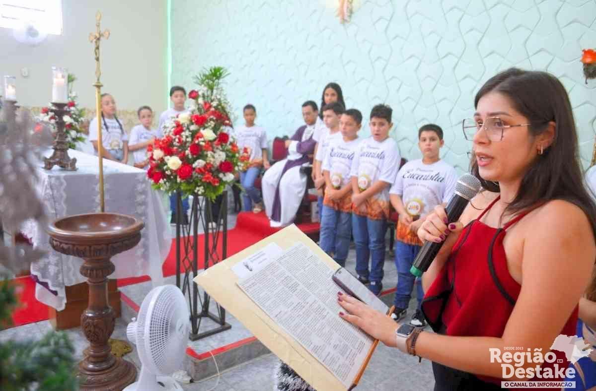 A manhã deste domingo (30) foi de emoção e significado especial na Paróquia Santo Antônio, em Ibaté. A igreja ficou lotada para acompanhar a primeira comunhão de 12 crianças, realizada durante a missa que marcou o início do Advento, período que prepara os fiéis para a chegada do Natal. A celebração foi presidida pelo padre Luiz Antenor, que conduziu o momento com mensagens de fé, esperança e renovação.