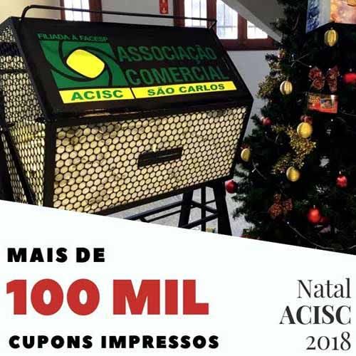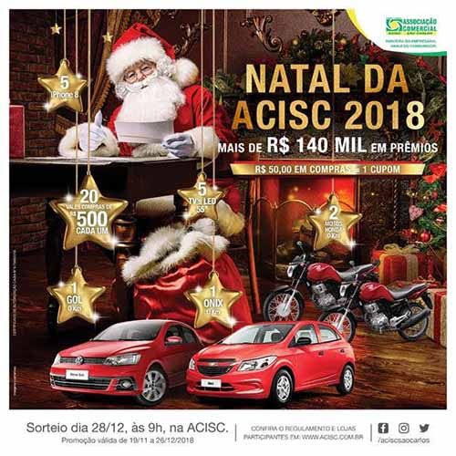 A Associação Comercial e Industrial de São Carlos (ACISC), realizará amanhã, 28 de dezembro, o sorteio da promoção “Natal ACISC 2018”. A apuração terá início às 9h, na sede da entidade, com o livre acesso dos associados, lojistas e seus representantes, além da imprensa e interessados em acompanhar o processo.