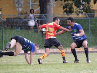 E, como quem não faz, toma, aos 15 minutos o Ribeirão Preto abriu o com Marcelo Danesin: penal cobrado na linha dos 5m e o segunda-linha ribeirão-pretano caiu para o try. Daniel Tiezzi, treinador e capitão da equipe verde e azul, converteu. São Carlos 0 x 7 Ribeirão Preto.