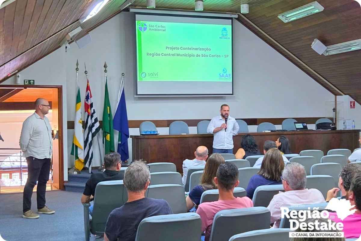 O Serviço Autônomo de Água e Esgoto (SAAE) de São Carlos inicia, na próxima sexta-feira (20), a implantação de um novo sistema de coleta de resíduos domiciliares por meio de contêineres na região central da cidade. A iniciativa, realizada em parceria com a empresa São Carlos Ambiental, foi apresentada nesta terça-feira (17), na sede da Associação Comercial e Industrial de São Carlos (ACISC).