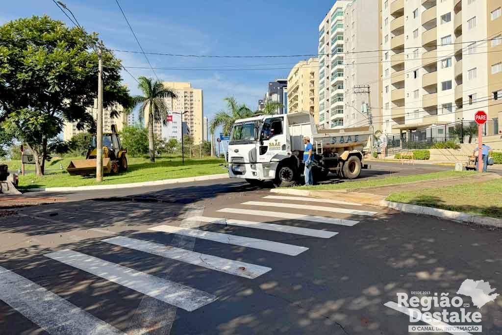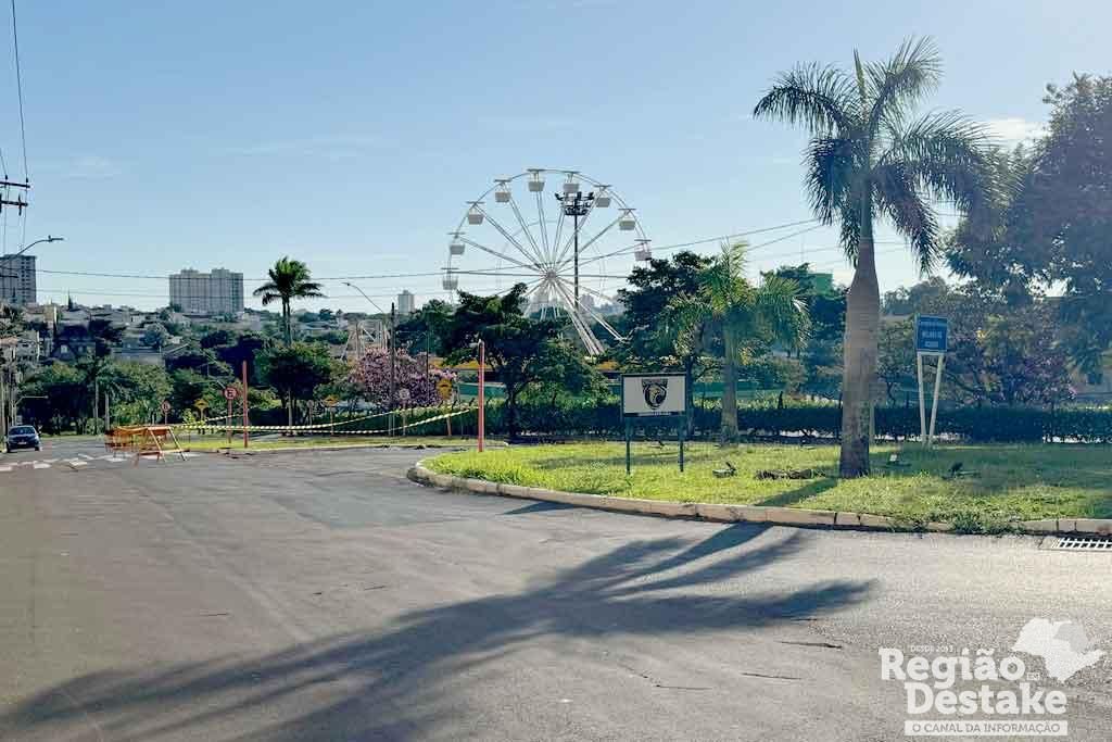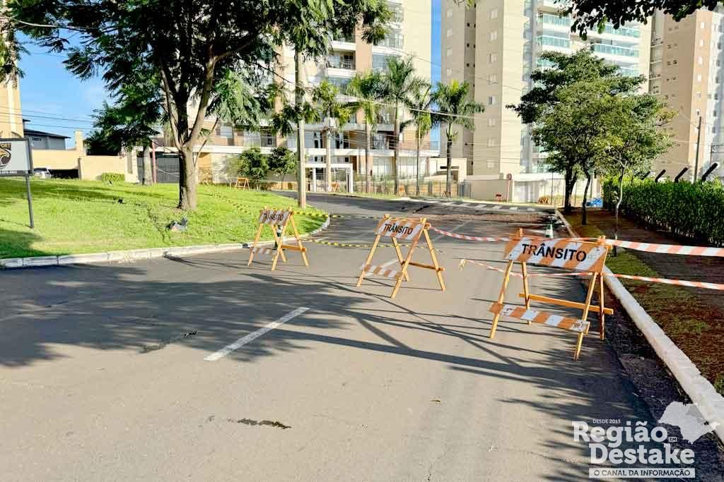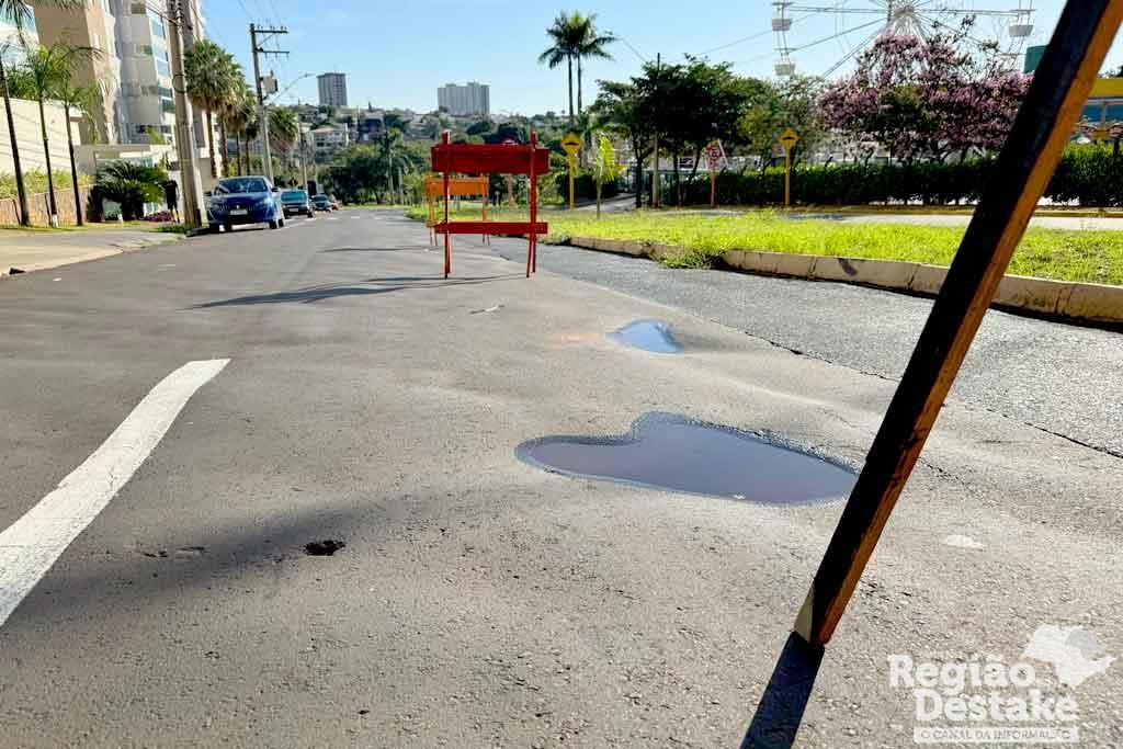 Devido ao rompimento, a rotatória da região precisou ser interditada, e há sinalização no local para orientar os motoristas. A recomendação é que os condutores redobrem a atenção ao trafegar pela área afetada.