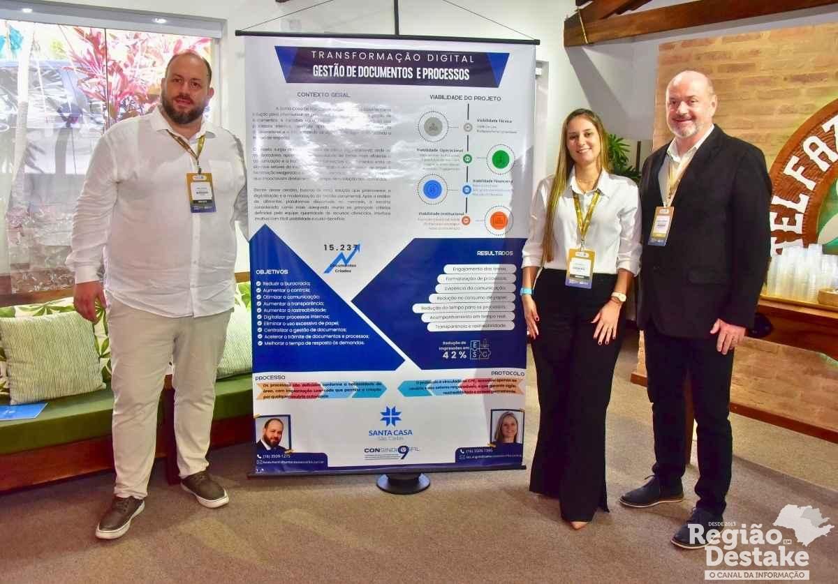 Além disso, a Santa Casa conquistou o 7º Prêmio de Boas Práticas de Gestão de RH do SINDHOSFIL/SP 2025, com o projeto apresentado pelos colaboradores Laís Ângulo e Lucas Marini. O trabalho destacou o uso da plataforma 1Doc, uma ferramenta de gestão de processos e documentos digitais que centraliza a comunicação interna, elimina o uso de papel e otimiza fluxos de trabalho, contribuindo para uma administração mais ágil e sustentável.