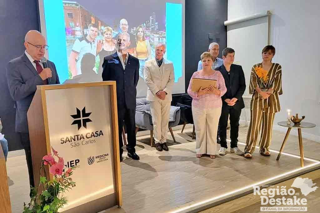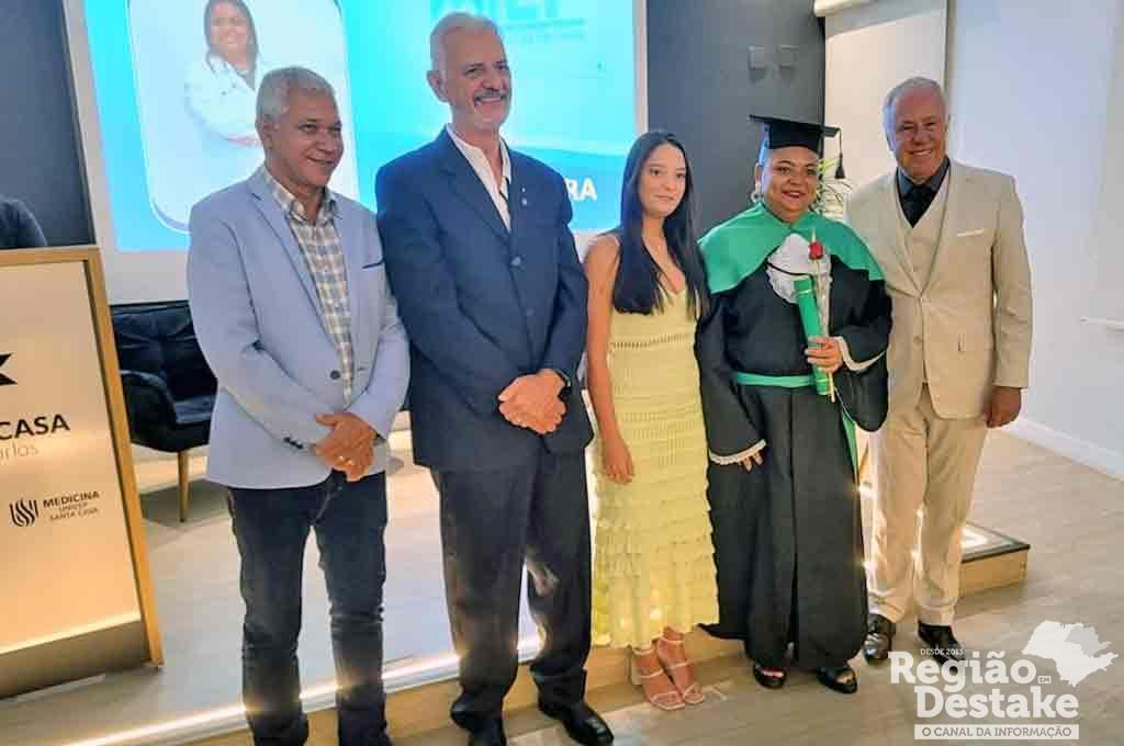 A Santa Casa de São Carlos realizou, na noite de sexta-feira (02/02), a cerimônia de Colação de Grau e entrega dos diplomas aos formandos da 2ª Turma do Curso Técnico de Enfermagem do Instituto de Ensino e Pesquisa (IEP) do hospital. O Dr. Marcio Antonio Cazú foi homenageado durante o evento, e a 2ª Turma do Curso Técnico de Enfermagem passará a ser chamada de “Dr. Marcio Antonio Cazú” em reconhecimento aos serviços prestados à instituição.