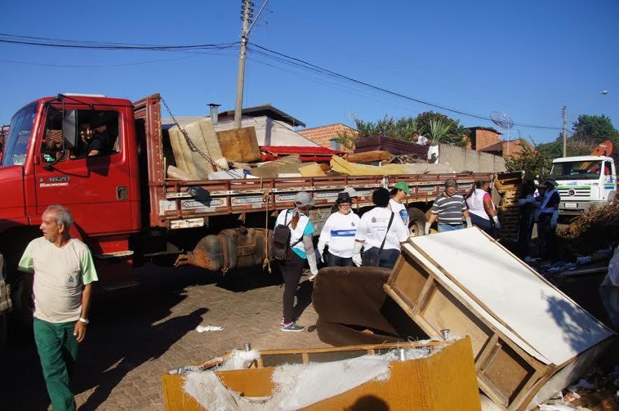 O trabalho contou com a ajuda dos agentes de Combate a Endemias. “Nós estamos removendo os volumosos, sofás, armários e materiais que podem servir de abrigo para animais como escorpiões, aranhas, ratos, além de materiais que podem se transformar em criadouros de mosquito, como vasos sanitários, plásticos e isopor que acumulam água da chuva”, contouDenise Scatolini, chefe da Equipe de Combate a Endemias.
