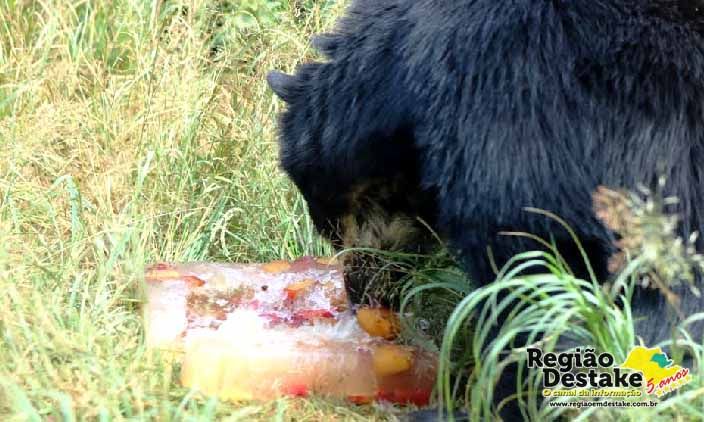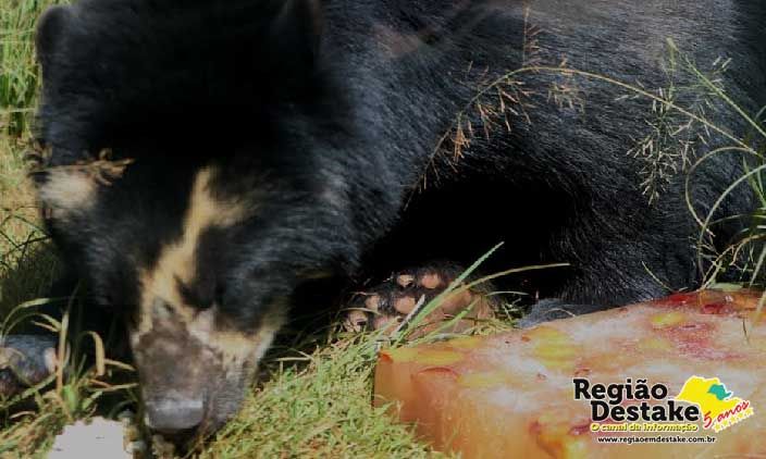 Vivi, Bumer e Brutos (felinos), Paulinha e Tábata (ursos de óculos) tiveram uma manhã muito refrescante. Para driblar o calor, que ultrapassou os 30 graus nesta quinta-feira (10), os animais saborearam blocos de sorvete preparados de acordo com a alimentação de cada espécie.