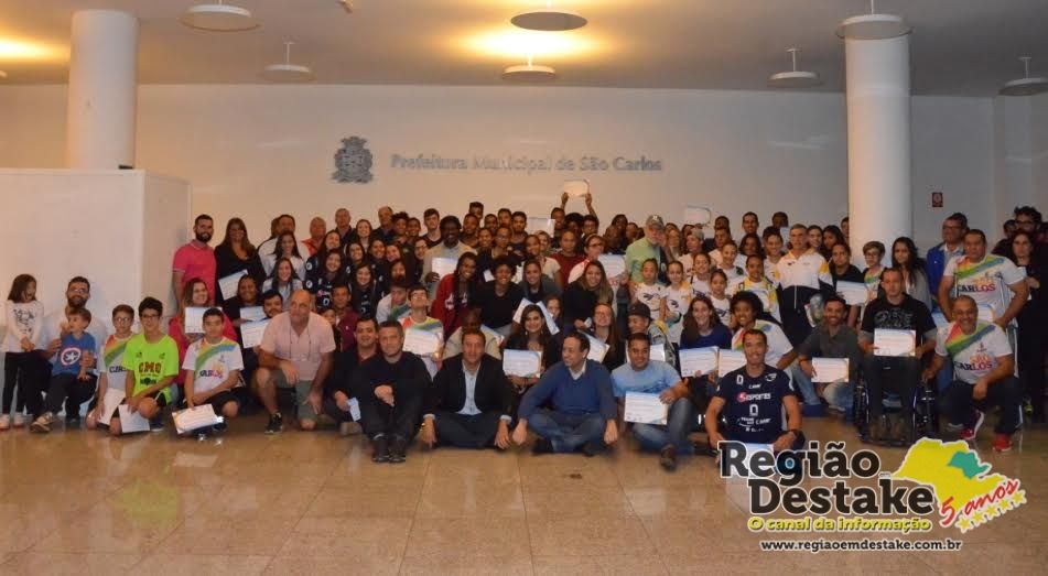 Atletas, técnicos e integrantes das equipes de apoio dos 62º Jogos Regionais 2018 foram homenageados, na noite desta quinta-feira (2), no Paço Municipal. Cerca de 400 atletas participaram da competição, conquistando para a cidade o primeiro lugar na classificação geral, com 310 pontos.