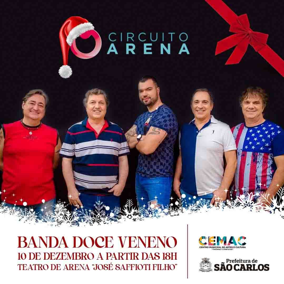 A Banda Doce Veneno, com mais de 40 anos de shows vai agitar o público no Teatro de Arena “José Saffioti Filho”, anexo ao Teatro Municipal Drº Alderico Vieira Perdigão, a partir das 18h.