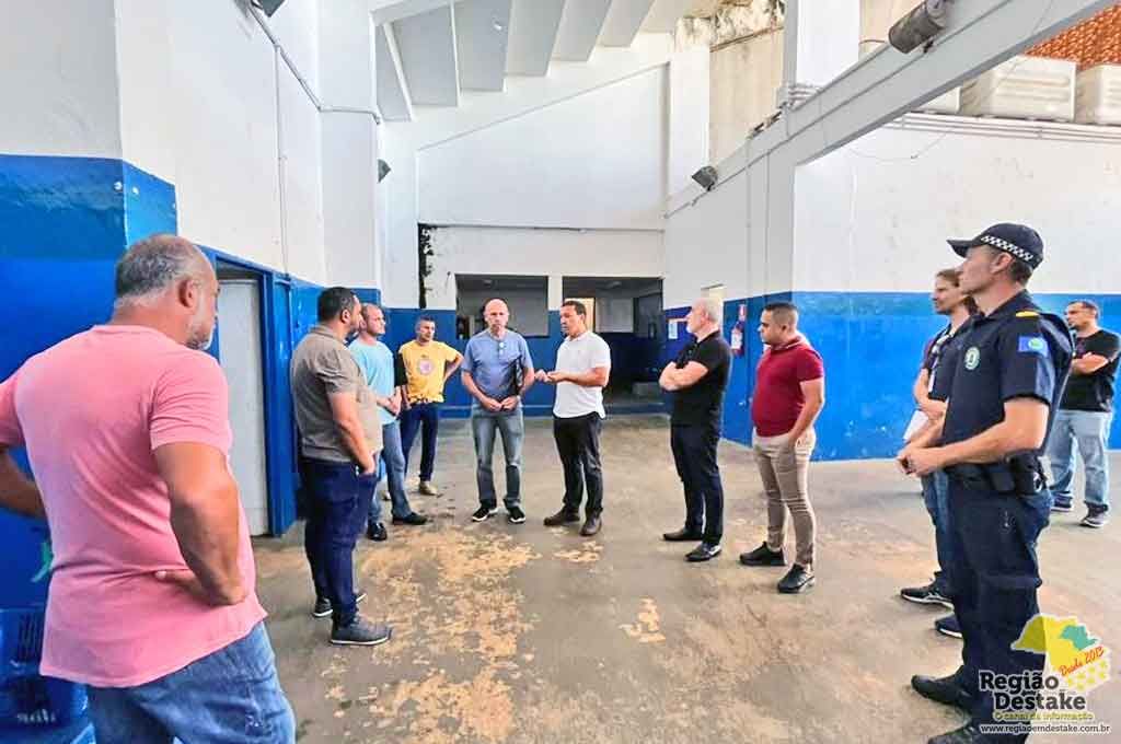 Representantes da Federação Paulista de Futebol e da Polícia Militar, foram recebidos nesta manhã pelos secretários de Esportes, Thiago de Jesus, de Defesa Social e Segurança Pública, Samir Gardini, pelo chefe de gabinete da Secretaria de Serviços Públicos, José Augusto Santana, junto ao vice-prefeito, Edson Ferraz, para uma vistoria prévia do Estádio Luisão. A praça esportiva vai receber mais uma vez os jogos da Copa São Paulo de futebol júnior, a Copinha, na cidade, a partir de 3 de janeiro de 2023.
