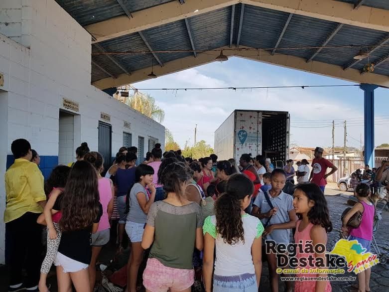 No período da manhã o Caminhão percorreu 8 propriedades rurais, atendendo 11 famílias com a distribuição de roupas, cobertas e calçados. Cada pessoa teve o direito de escolher 15 peças de acordo com o tamanho e modelo das roupas.