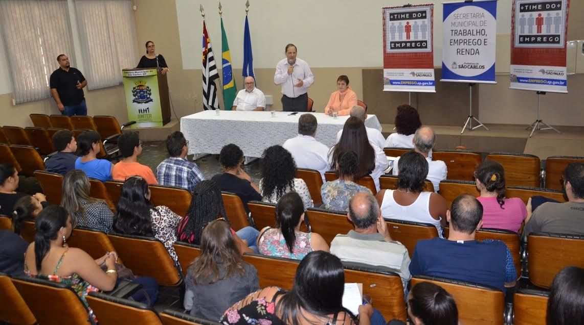 A Prefeitura de São Carlos, por meio da Secretaria Municipal de Trabalho, Emprego e Renda (SMTER), preparou mais 30 pessoas para o mercado de trabalho via programa Time do Emprego da Secretaria Estadual do Emprego e Relações do Trabalho (SERT). Na tarde de quinta-feira (17), a terceira e quarta turma do Time do Emprego 2018 recebeu do secretário municipal de Trabalho, Emprego e Renda, Walcinyr Bragatto, da Coordenadora Estadual do Time do Emprego, Sandra Império e de José Francisco Pires, representando o deputado federal Lobbe Neto, seus certificados pela conclusão das atividades de orientação profissional.