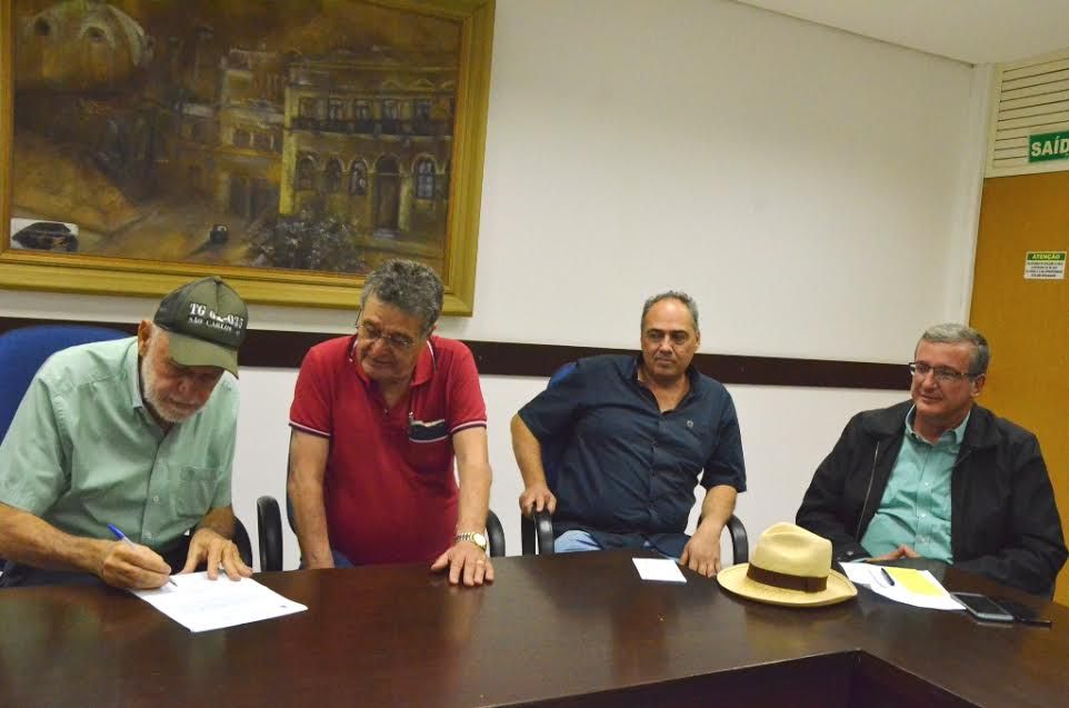 O prefeito Airton Garcia e os secretários de Governo, Edson Fermiano, de Obras Públicas, Reginaldo Peronti e de Educação, Nino Mengatti, assinaram na tarde desta segunda-feira (4), a ordem de serviço para início das obras de construção de uma escola municipal no Residencial Eduardo Abdelnur, localizado na região da Água Fria.