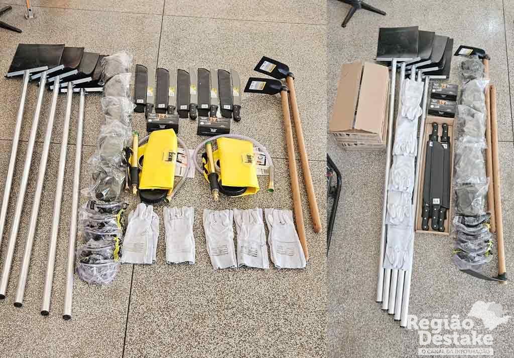 O kit, com validade operacional de dois anos, inclui cinco abafadores para incêndio, duas bombas costais flexíveis, cinco pares de luvas de raspa, dois enxadões, cinco facões com bainha, cinco óculos de proteção, cinco cantis e duas lanternas.
