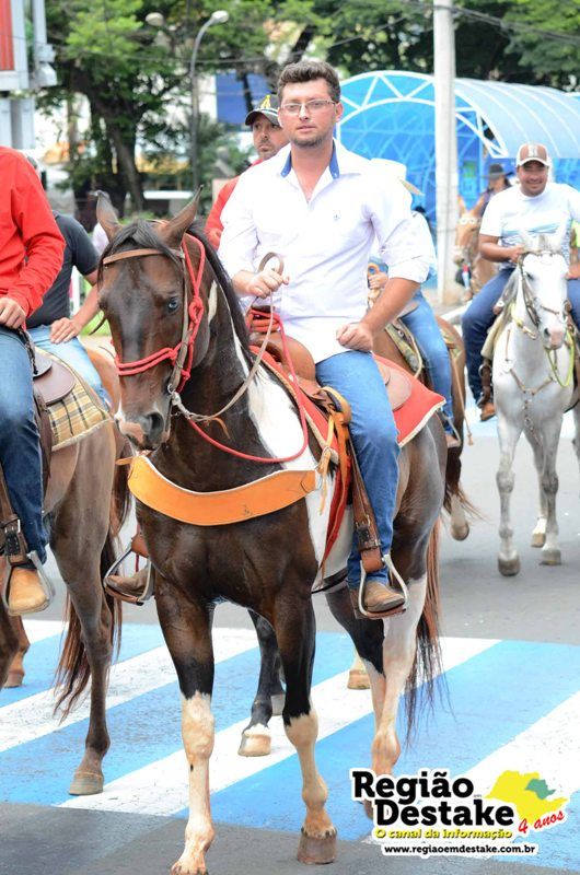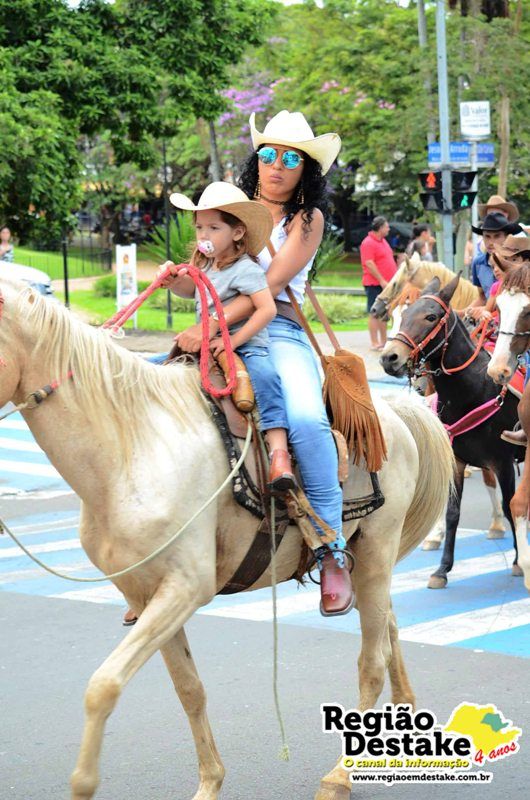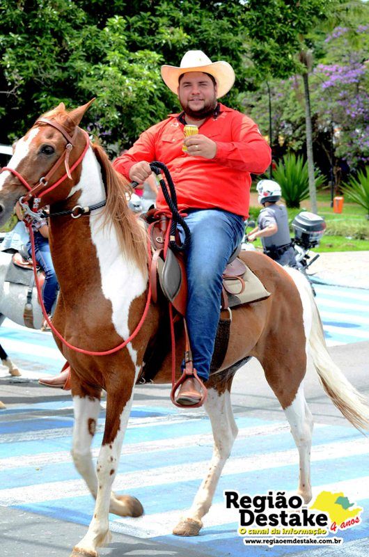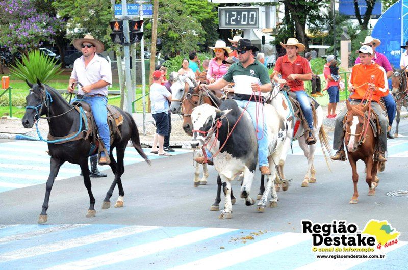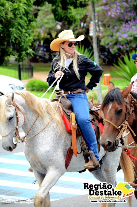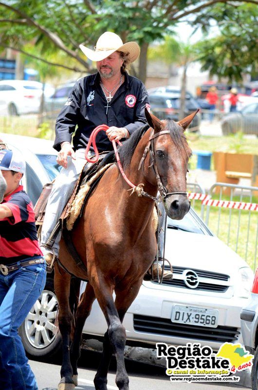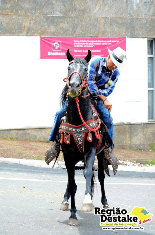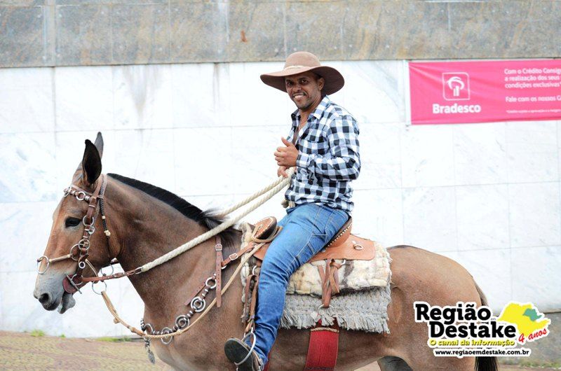 Como já é tradicional, a concentração aconteceu na Avenida Getúlio Vargas, em terreno localizado atrás do CEME (Centro Municipal de Especialidades), de onde os participantes partiram com seus animais até o Campo Chico Preto, no bairro Santa Felícia.