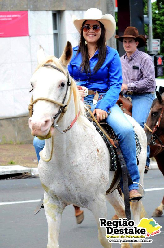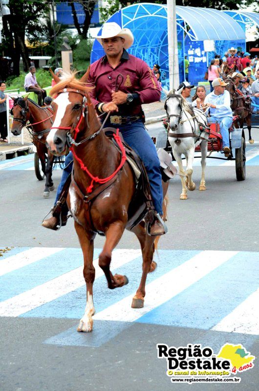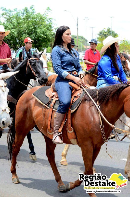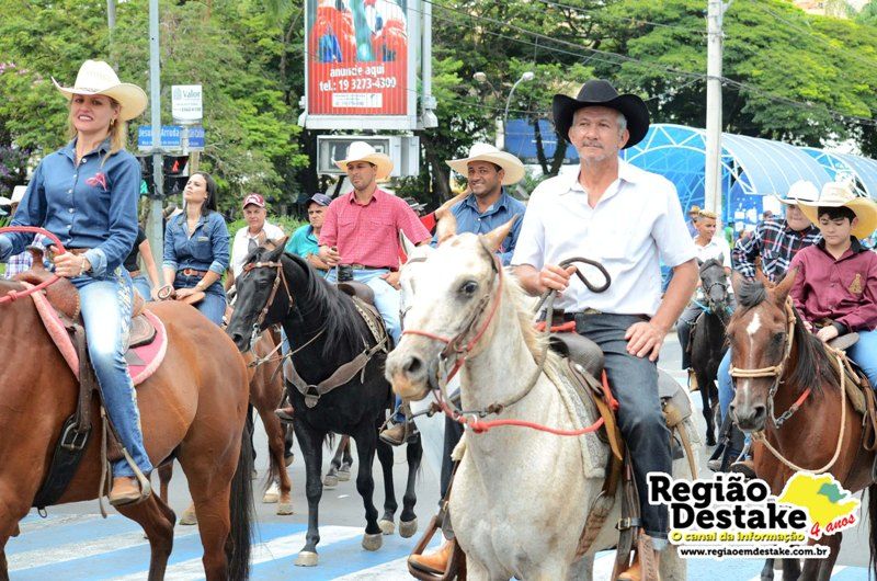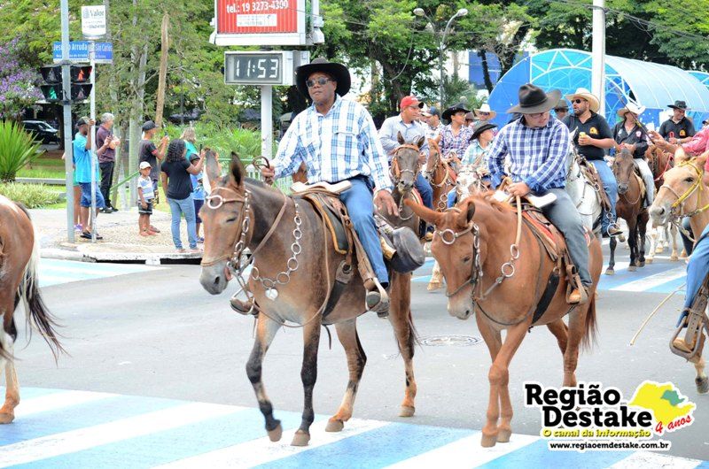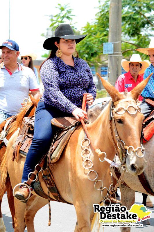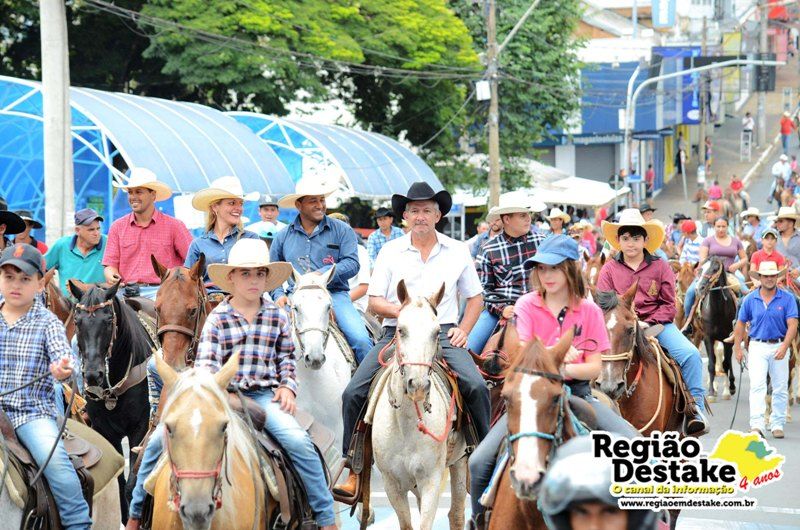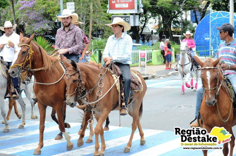 Como já é tradicional, a concentração aconteceu na Avenida Getúlio Vargas, em terreno localizado atrás do CEME (Centro Municipal de Especialidades), de onde os participantes partiram com seus animais até o Campo Chico Preto, no bairro Santa Felícia.