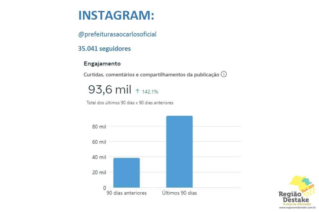 Os números crescentes confirmam a participação dos cidadãos cada vez mais nas redes da Prefeitura. No Instagram, nos últimos 90 dias, entre curtidas, comentários e compartilhamentos, foram quase 94 mil participações, antes pouco menos de 40 mil nos 90 dias anteriores, um crescimento de 140 por cento.