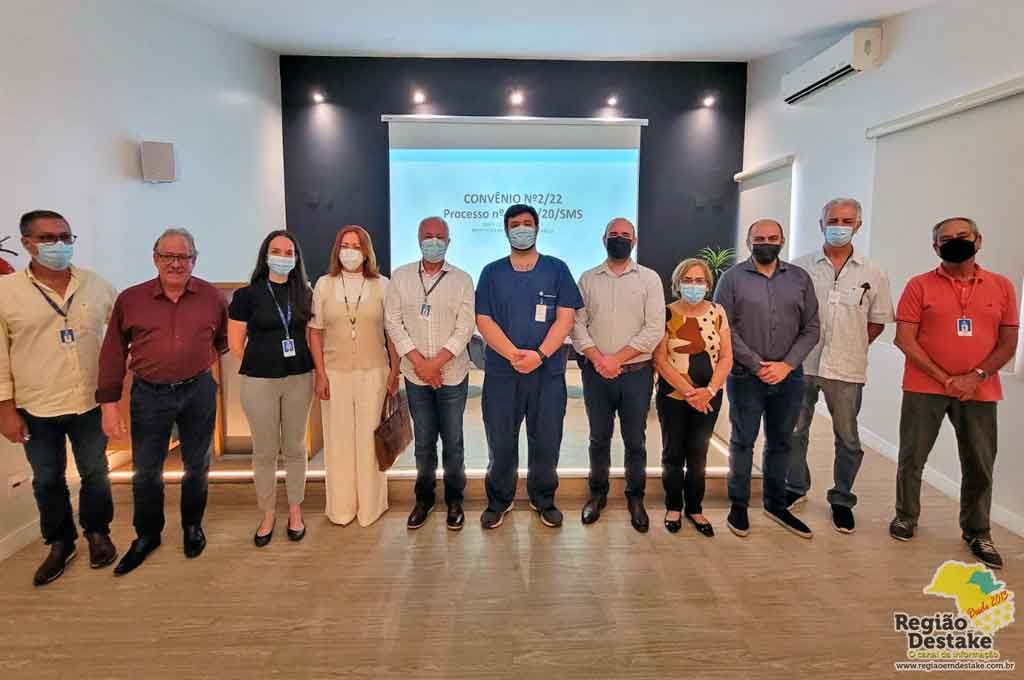 O Secretário Municipal de Planejamento e Gestão, Netto Donato, e a Secretária Municipal de Saúde, Jôra Porfírio, foram recebidos no Auditório Alois Partel pelo Provedor Antônio Valério Morillas Júnior e pelos diretores Dr. Roberto Muniz Júnior, Dra. Carolina Toniolo Zenatti e Mario José Calderaro.