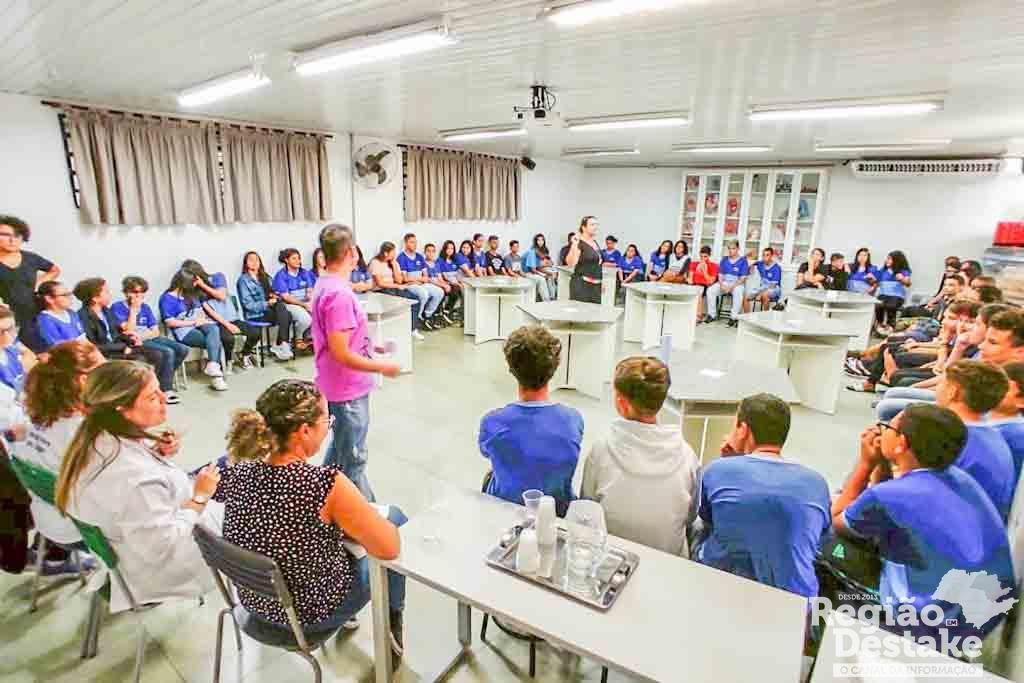 As palestras foram realizadas em parceria com escolas da rede estadual de ensino, para os alunos dos 8º e 9º anos do ensino fundamental e para os alunos do ensino médio.