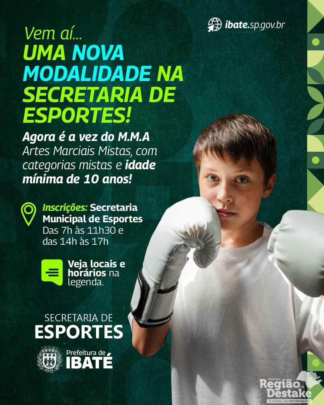A Prefeitura de Ibaté, por meio da Secretaria Municipal de Esportes, incluiu o MMA (Artes Marciais Mistas) entre as modalidades esportivas gratuitas oferecidas à comunidade. A nova atividade é voltada para o público a partir dos 10 anos de idade e está com inscrições abertas.
