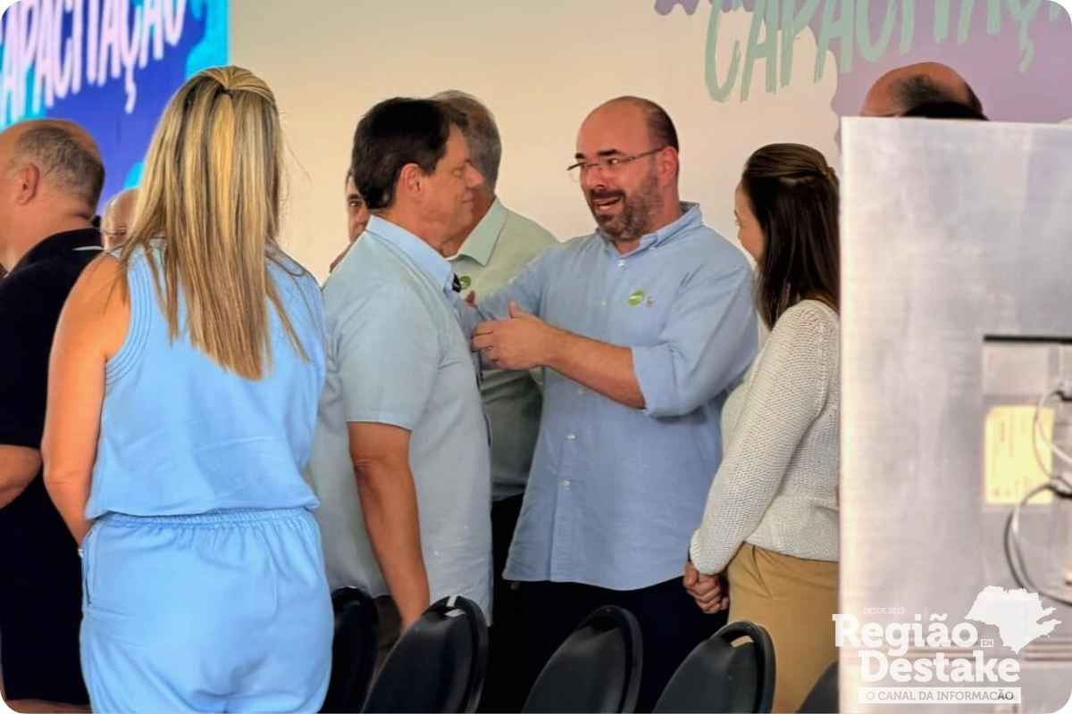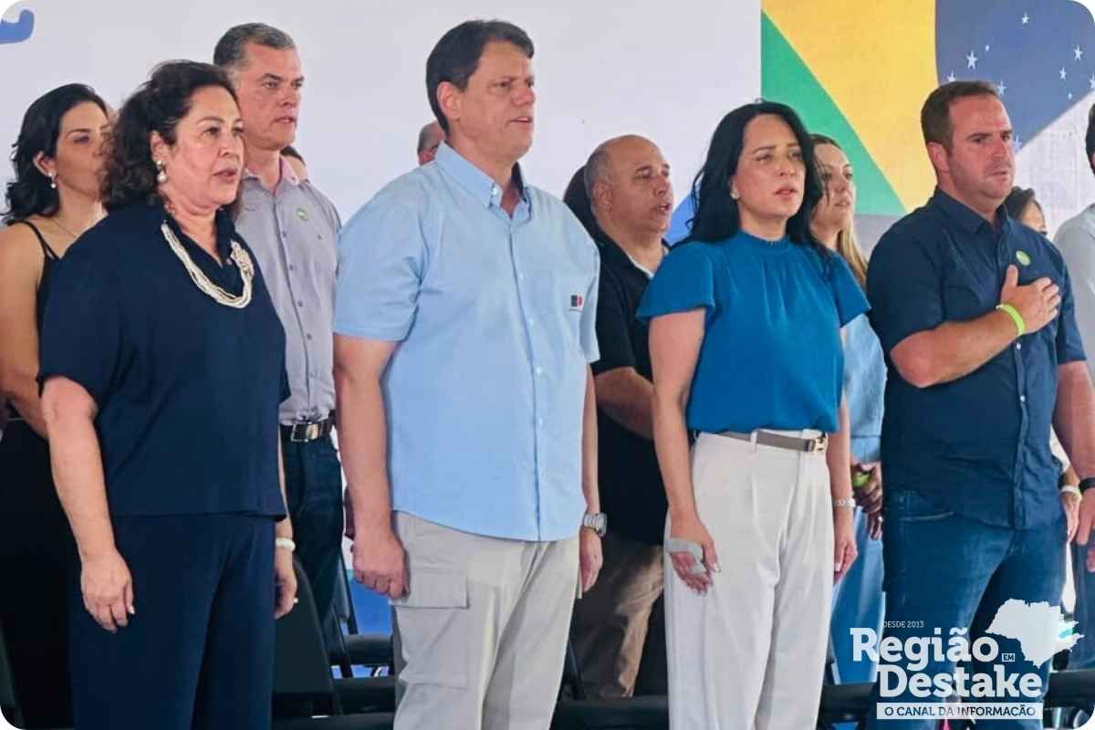 O prefeito de São Carlos, Netto Donato, e a primeira-dama e presidente do Fundo Social de Solidariedade do município, Herica Ricci Donato, participaram na tarde desta sexta-feira (20), em Américo Brasiliense, da cerimônia de formatura do 17º ciclo do programa Caminho da Capacitação. O evento contou com a presença do governador Tarcísio de Freitas e da primeira-dama do Estado, Cristiane de Freitas, reunindo alunos de 16 cidades da região.