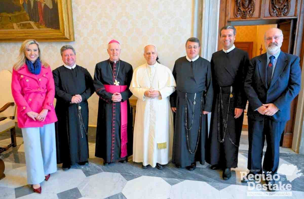 O Santo Padre acolheu a equipe formada por Dom Orlando Brandes, Arcebispo de Aparecida, e pelos missionários redentoristas padre Marlos Aurélio da Silva, superior provincial da Província Nossa Senhora Aparecida; padre Eduardo Catalfo, reitor do Santuário Nacional; e Irmão Alan Patrick Zuccherato, diretor de arte e pastoral da emissora. E junto deles, para registrar o encontro, a apresentadora e jornalista, Camila Morais.